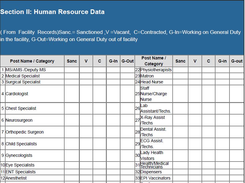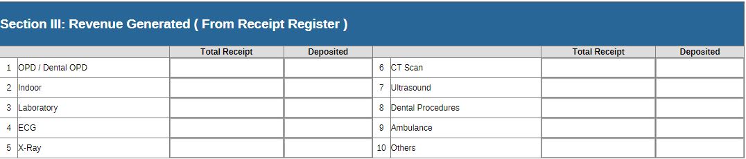Monthly HR, Budget and Revenue form collect data of Health Facilities on monthly basis. It has three sections for data entry .